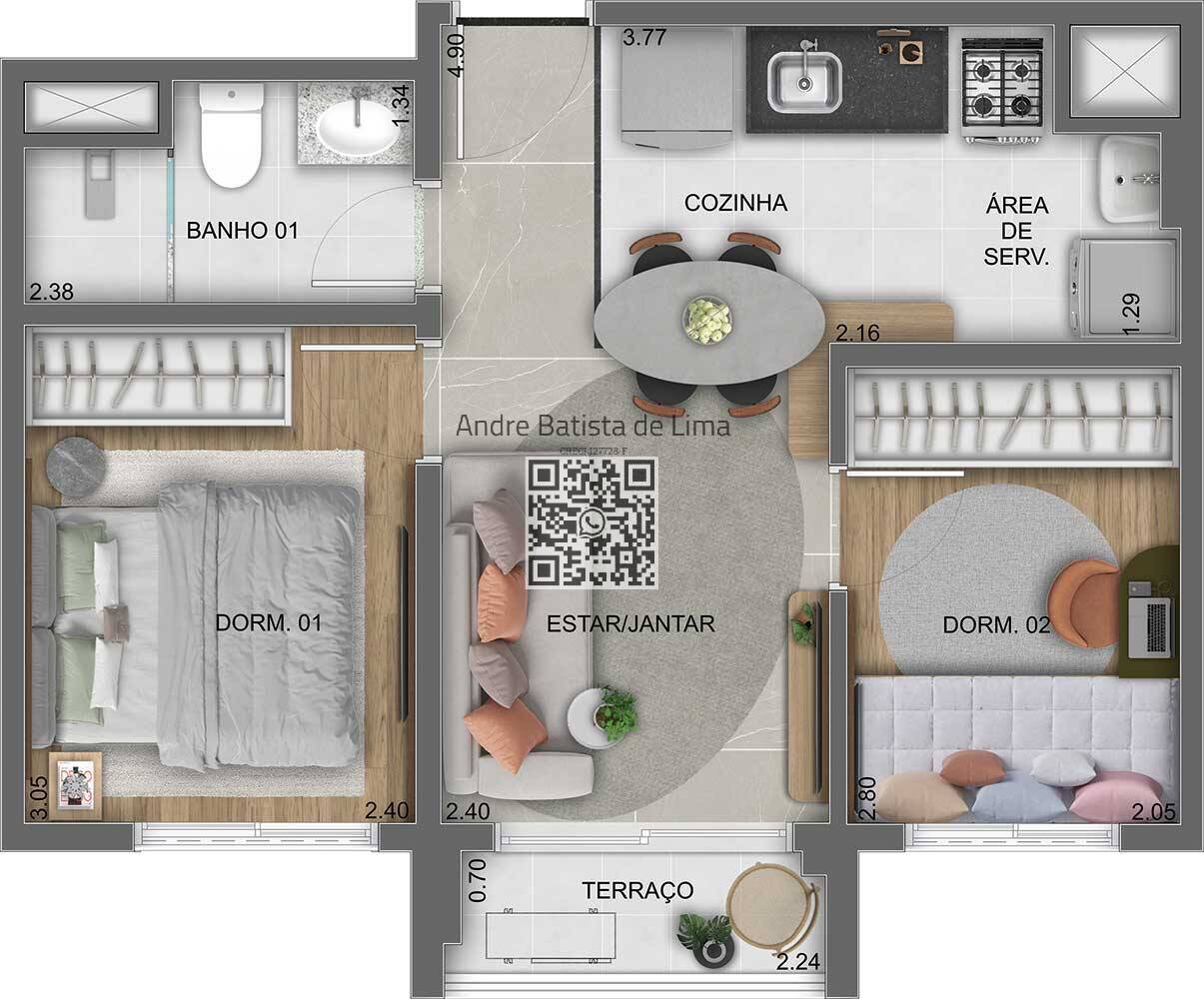 Com três opções de metragens — 38 m², 69 m² e 71 m² — os apartamentos do Lume House são perfeitos tanto para casais, quanto para famílias em crescimento. As plantas de 3 dormitórios garantem espaço interno otimizado, enquanto as unidades de 2 dormitórios são ideais para quem busca funcionalidade com estilo.