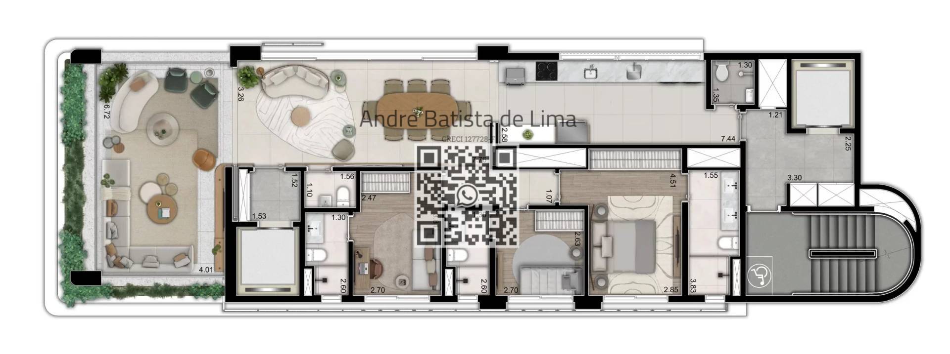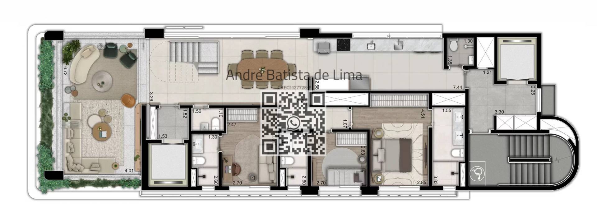 Os apartamentos do Lux Alto da Lapa possuem metragens generosas e layouts funcionais, que valorizam iluminação natural, ventilação cruzada e integração dos ambientes.