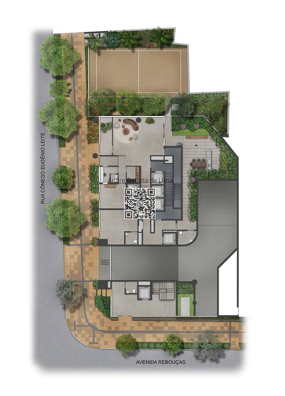 O Platz 450 está na esquina da Av. Rebouças com a Rua Cônego Eugênio Leite, um endereço que combina conveniência e estilo.