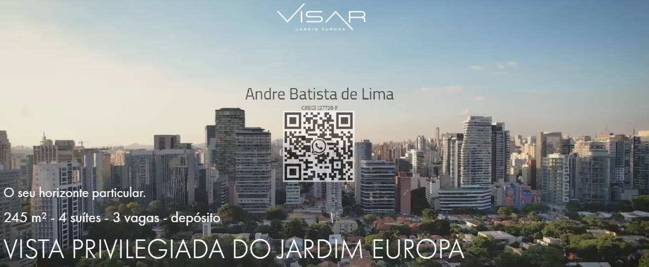 Você acaba de encontrar o imóvel perfeito para viver com estilo, privacidade e bem-estar no coração de São Paulo. O Visar Jardim Europa é um lançamento de alto padrão que oferece o máximo em conforto, segurança e localização privilegiada.