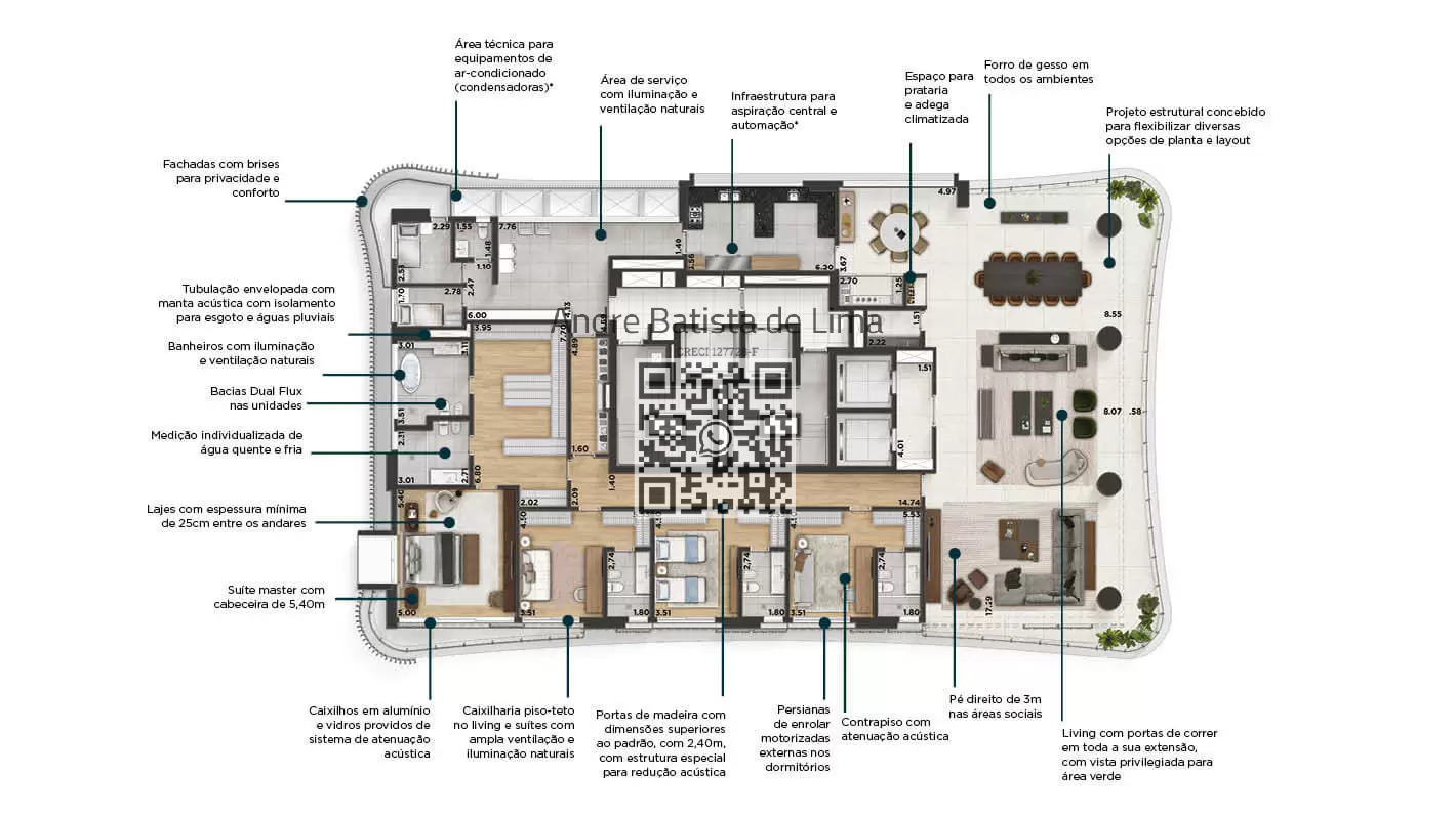 Com apartamentos de 541 m² privativos, 4 suítes elegantes, 6 vagas de garagem e depósito privativo, o projeto foi criado para proporcionar qualidade de vida, bem-estar e exclusividade para você e sua família.